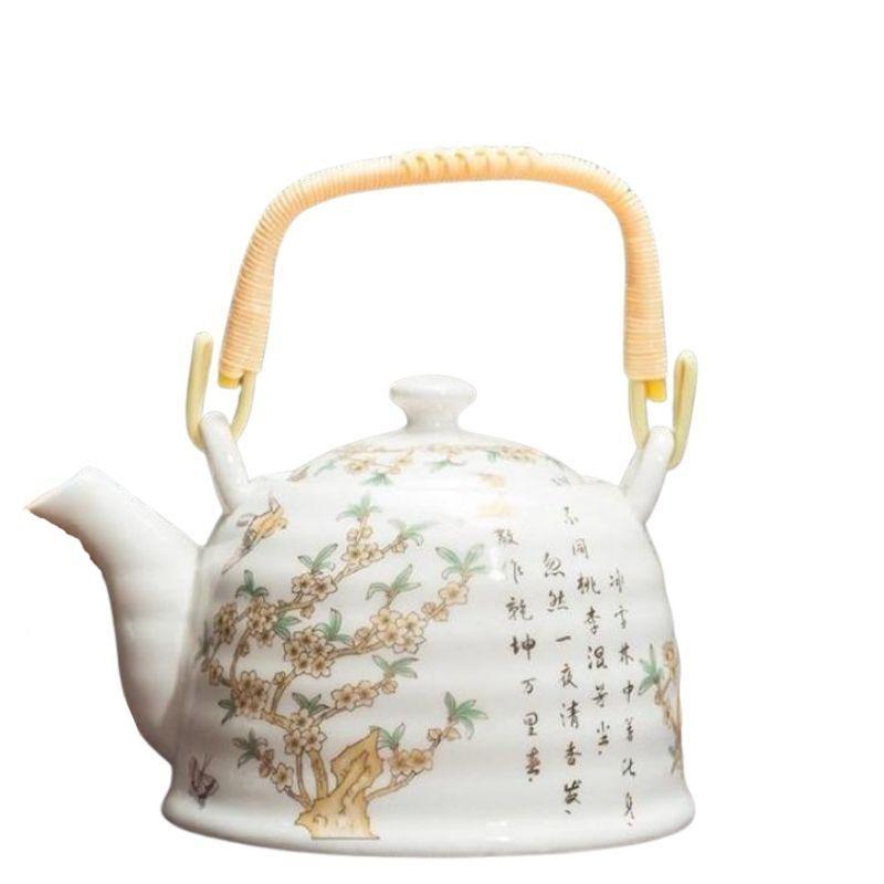 Laissez-vous séduire par l’univers vintage de cette théière en céramique vintage à la silhouette rétro bien dessinée et à la contenance généreuse de 900 ml, qui remet plus qu’au goût du jour le service à thé pour les amateurs de thé qui veulent cultiver le style au sens mémoriel et intemporel. Sa robustesse et son originalité érigent cette pièce du fond de cuisine à l’accessoire quelle que soit l’occasion. Suivez ainsi la tendance qui s’affirme hors du commun et résiste à la banalité.
